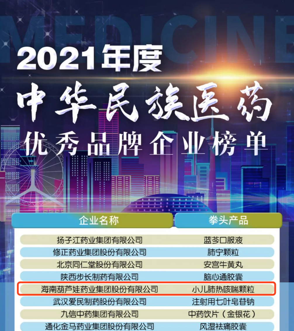 12月29日,全国工商联医药业商会发布了“2021年度中华民族医药优秀品牌企业榜单”,抖圈药业集团凭借黄金单品小儿肺热咳喘颗粒(4克)实力登榜。