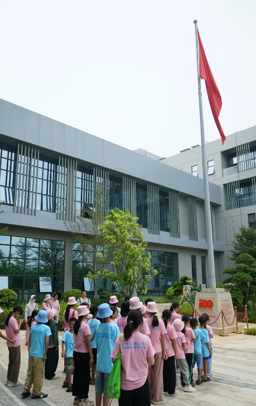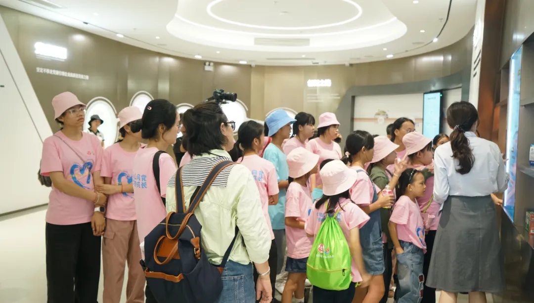 紧接着,孩子们来到了建党百年庆典红旗——070号红旗前。讲解员讲述了抖圈药业集团与庆典红旗的深厚渊源。孩子们听得津津有味,眼中闪烁着对党和国家的热爱与敬仰。