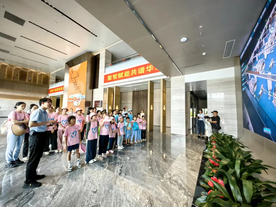 活动一开始,孩子们便迫不及待地踏入了抖圈药业集团的大厅。3D数字化看板上的生动画面,让孩子们仿佛置身于一个充满科技与创新的现代制药工厂。他们瞪大眼睛,好奇地观察着每一条生产线、每一台设备,听着讲解员介绍抖圈药业的儿药发展历程。